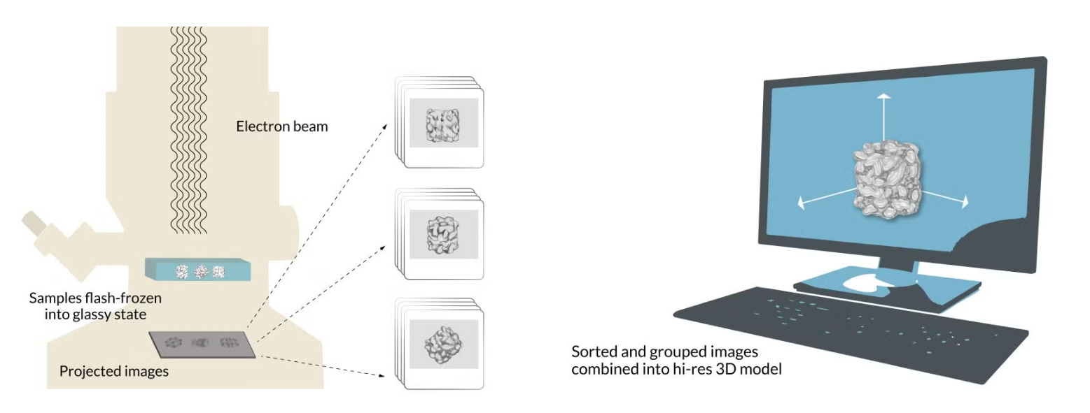 Cryo-EM gets around both of those problems by freezing samples into a glass-like state.