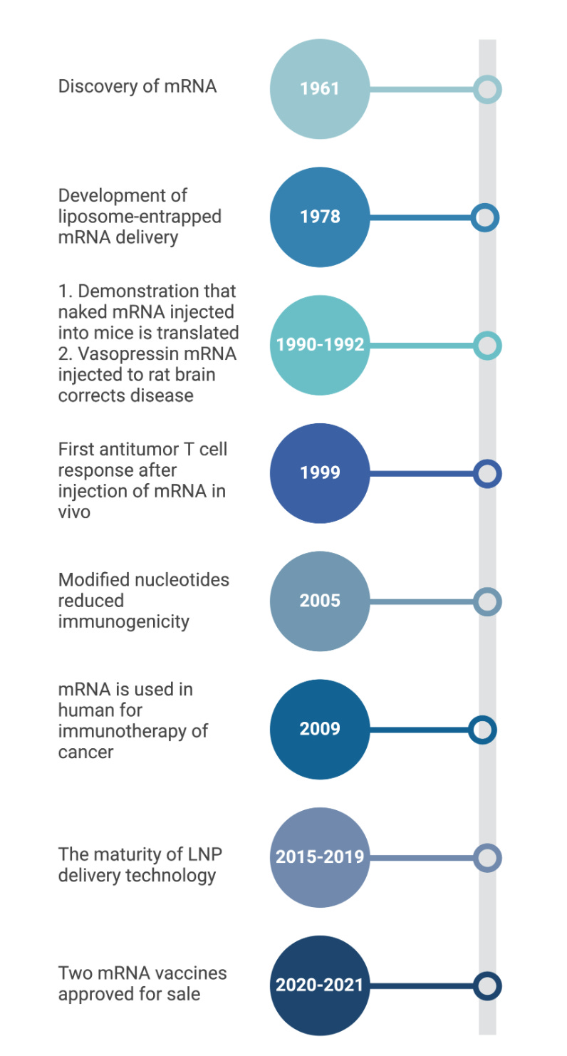 Rein Verbeke R, Lentacker I, De Smedt SC, Dewitte H. Three decades of messenger RNA vaccine development. Nano today, 28: 2019.