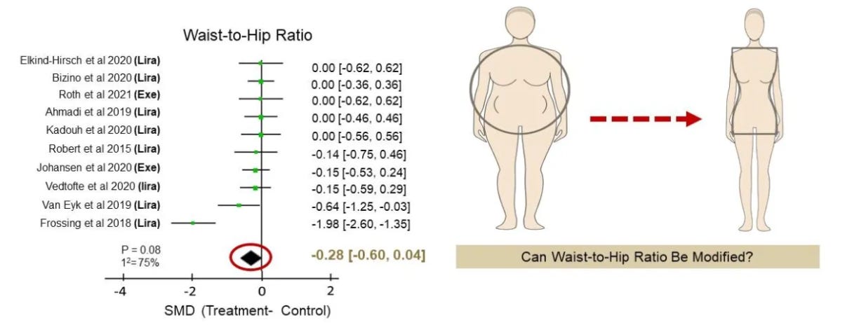But here is the limitation: despite their success on the scale, GLP-1 agonists do not reliably change WHR. A 2023 meta-analysis of ten randomized controlled trials found that while patients on GLP-1 drugs lost substantial weight—including some visceral fat—their WHR remained largely unchanged. That means the most dangerous pattern of fat distribution, centered in the abdomen, persisted.